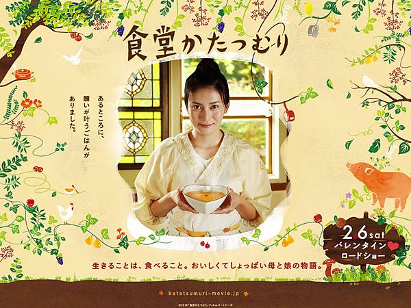 最近看了由柴崎幸和餘貴美子所主演的蝸牛食堂,電影的內容是描寫一個夢想著擁有自己餐廳的女孩-倫子,從故鄉來到東京打拼,每天努力存錢,但卻在夢想快要到達的前一刻,被騙光了積儲,走投無路的壓力下,讓倫子失去了說話的能力,並且落魄的回到故鄉,在母親及親朋好友的幫忙、還有寵物豬愛馬仕的陪伴下,重新站起來面對自己的人生,並將老家倉庫改建成屬於自己的-蝸牛食堂。