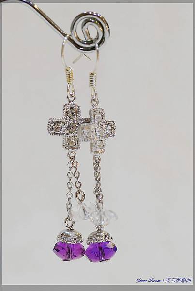紫水晶和白水晶的組合,搭配金屬配件,很閃亮~